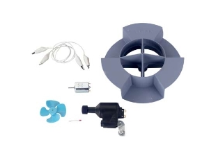 Cet ensemble de matériel permet aux élèves de construire très rapidement un système de production d’électricité fonctionnant avec de l’air ou de l’eau.