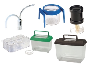 Composée de : 7 aspirateurs à insectes, 30 boîtes loupe diam 50 mm, 1 boîte loupe grand modèle, 7 loupes aplanétiques x10, 7 cages terrarium 1.5 litres, 2 cages terrarium 8 litres.