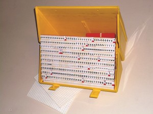 Mallette comprenant des plaques blanches permettant de constituer un texte à partir des lettres de l’alphabet à clipser et de le photocopier ensuite. Principe de l’imprimerie.